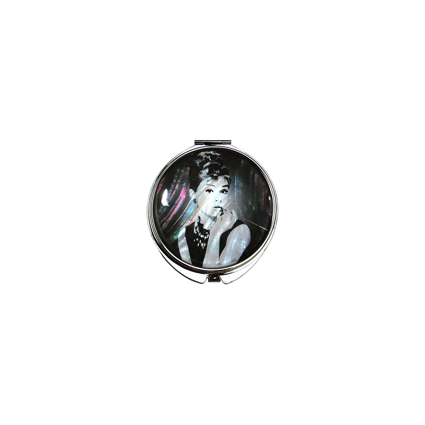 Published June 28, 2017 at 461 × 500 in Audrey-Hepburn-Makeup-Mirror-Mother-of-Pearl-Metal-Dual-Compact-Folding-Magnify-Black-White