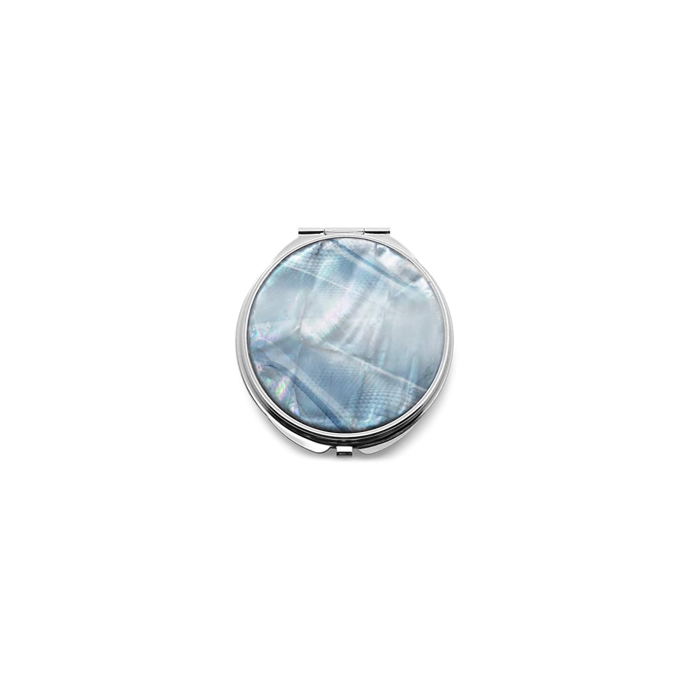Makeup-Compact-Pocket-Mirror-Mother-of-Pearl-Metal-Round-Double-Sided-Folding-Magnify-Digital-Fractal-Blue-Silver