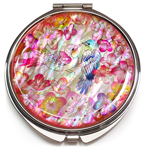 Published June 28, 2017 at 485 × 500 in Pink-Compact-Folding-Makeup-Mirror-Mother-of-Pearl-Metal-Dual-Magnify-Flowers-Birds-Design