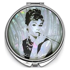 Round compact makeup double mirror with standard and 2.5 magnification for detail